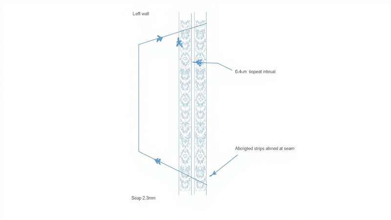 Pada area Depok yang banyak memiliki housing cluster dengan ceiling tinggi 3,2-3,5 m, repeat motif harus dihitung per shot untuk menghindari misalignment di vertical seam. Jika motif memiliki repeat 64 cm, maka setiap lembar vertikal tidak bisa dipotong hanya mengikuti tinggi bersih dinding. Harus ada penyesuaian ke kelipatan repeat agar sambungan kiri dan kanan tetap bertemu pada pola yang sama. Selisih 10-30 cm per lembar bisa terlihat kecil, tetapi pada 8-12 lembar hasil waste-nya sudah signifikan.